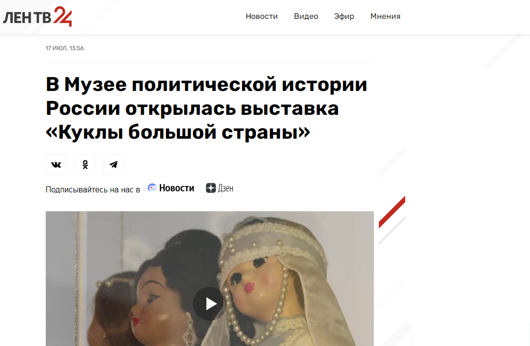 Региональный кабельный телеканал ЛенТВ24 выпустил репортаж об открывшейся в нашем музее выставке «Куклы большой страны».