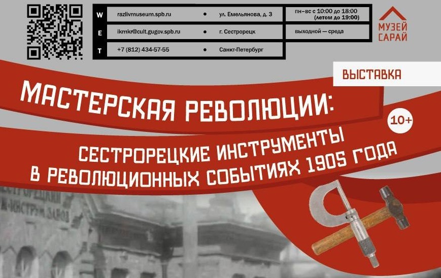 26 декабря в музее «Сарай Н. А. Емельянова» в Разливе откроется выставка «Мастерская революции: сестрорецкие инструменты в революционных событиях 1905 года». Партнером выставки выступает Музей политической истории России.