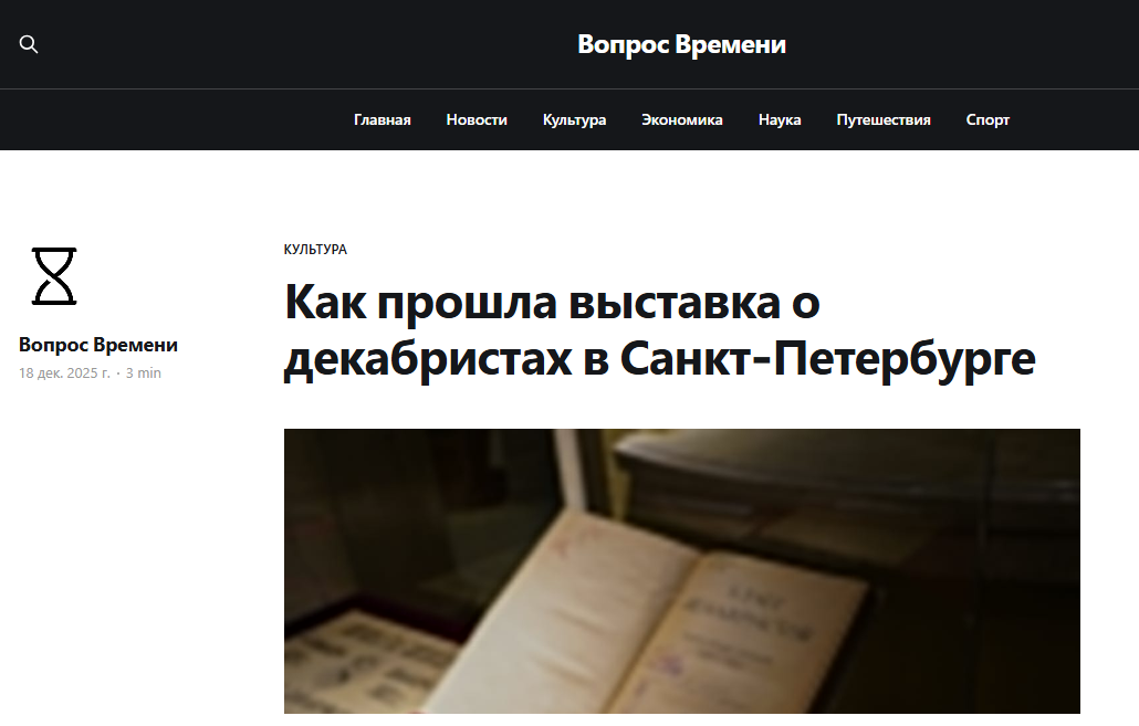Интернет-издание «Вопрос времени» выпустило материал о событиях, которые прошли в нашем музее 17 декабря. Они были приурочены к 200-летию восстания декабристов.