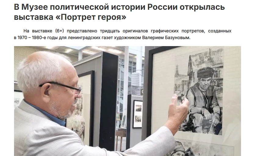 В номере № 151 (7973) ежедневной общественно-политической газеты вышла статья о персональной выставке работ художника-графика В. П. Базунова, которая работает в Музее политической истории России.