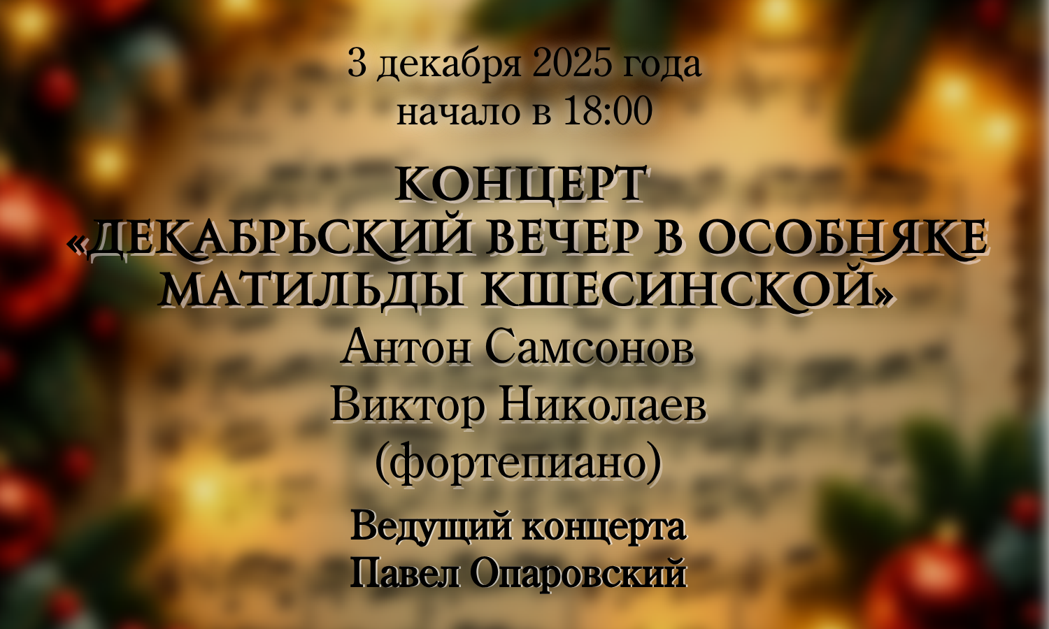 Это уже четвертый концерт из цикла под эгидой художественного руководителя Малого фестивального оркестра Павла Опаровского. Серия мероприятий с выступлениями артистов данного музыкального коллектива с большим успехом проводится в особняке Кшесинской осенью и зимой 2025 года.